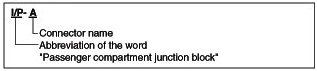 A junction block identification symbol consists of a wiring harness location classification symbol corresponding to a wiring harness location and number corresponding to the connector in the junction block.