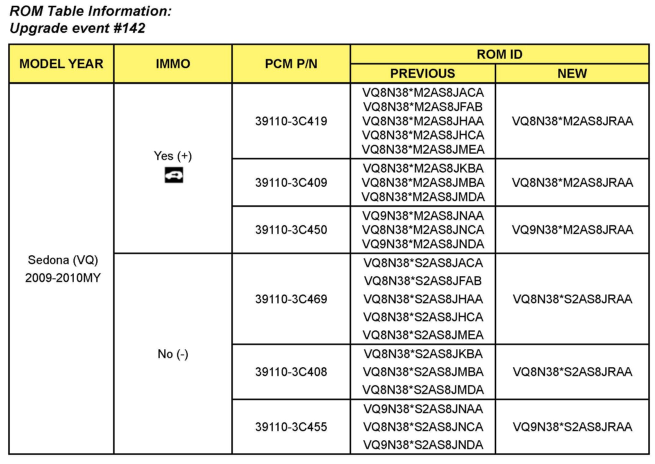 To verify the vehicle is affected, be sure to check the Calibration Identification of the vehicle's ECU's ROM ID and reference Table as necessary.