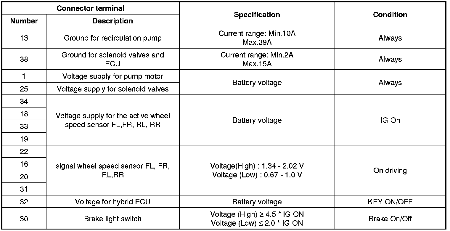 ECU Connector Input/Output(ABS)