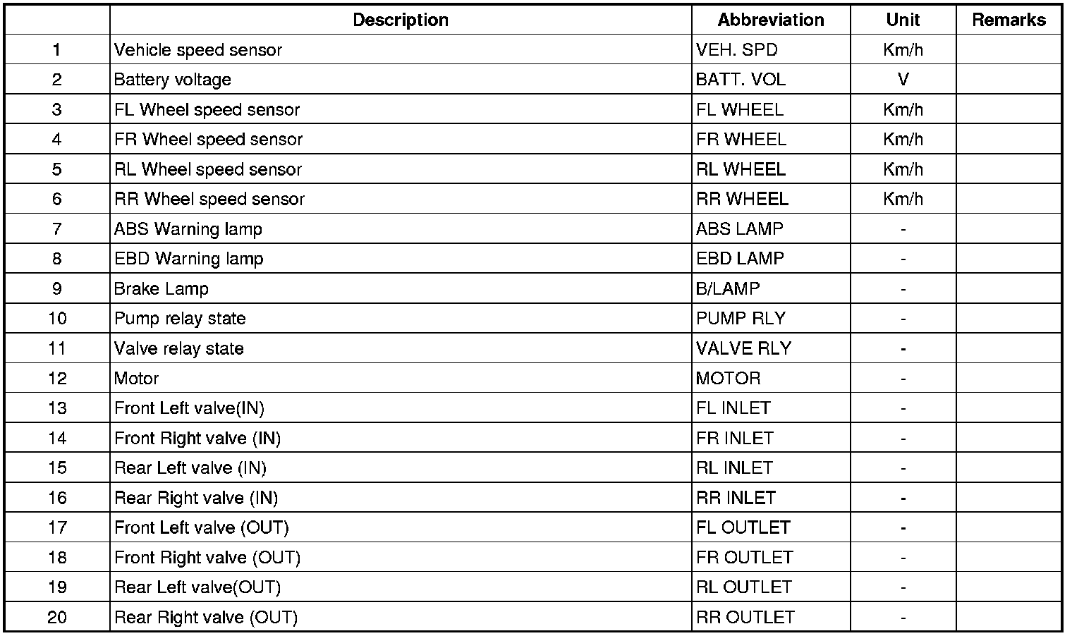 Sensor Output On GDS(ABS)