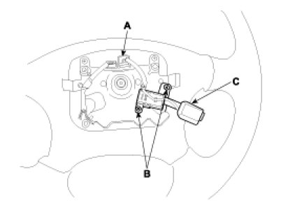 4. Loosen the two mounting screws(B), and remove the cruise remocon switch(C).