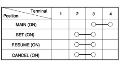 4. Check the continuity between the terminals of the connector in each switch position according to the table.