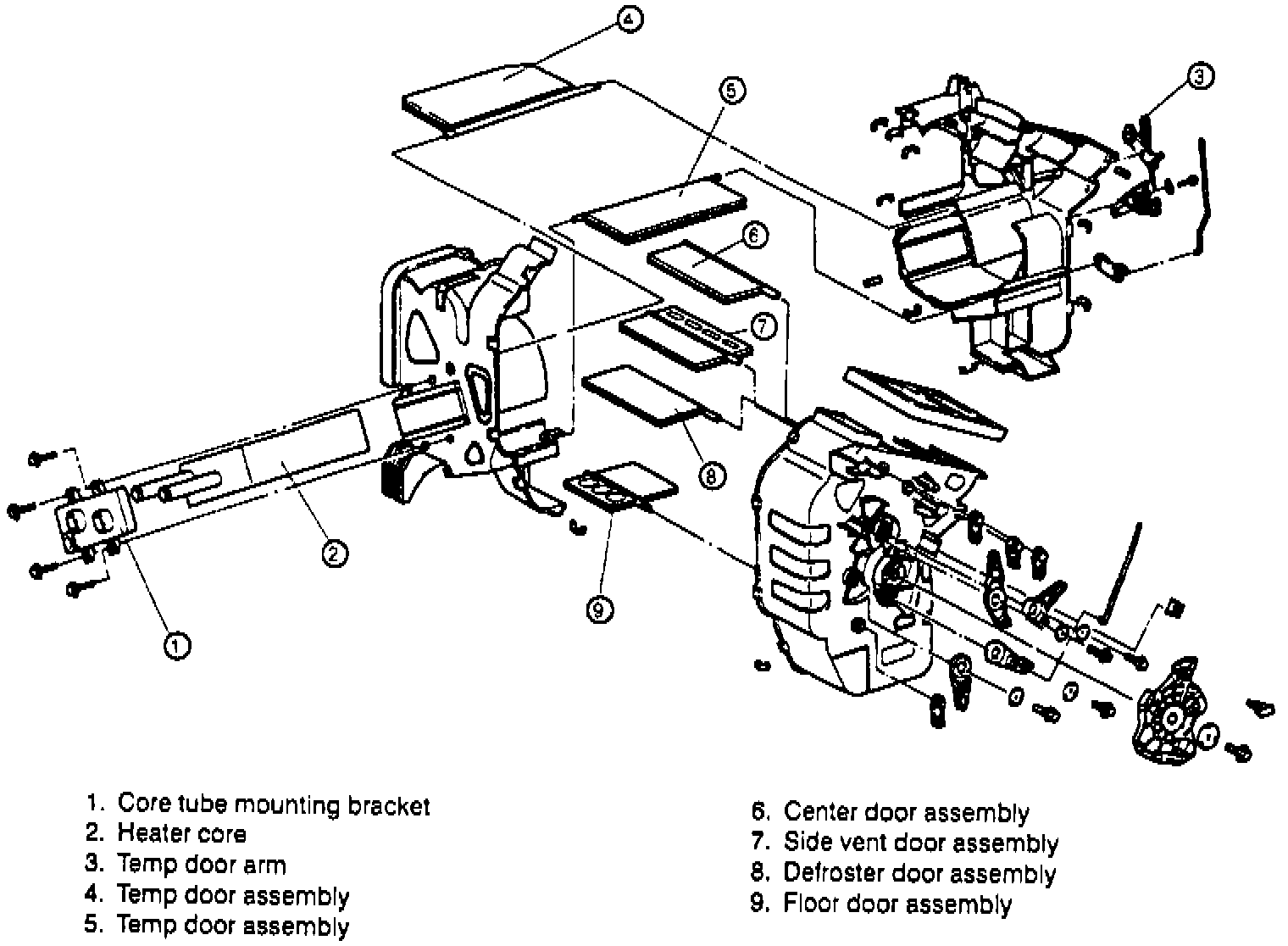 6. Remove heater unit. Disassemble heater unit and remove heater core as shown in Fig. 16.