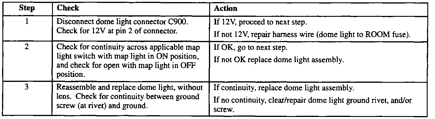 : Check condition of ROOM fuse. If fuse is open, locate and repair source of overload. Replace fuse. Also, check ignition key bulb. Replace if necessary.