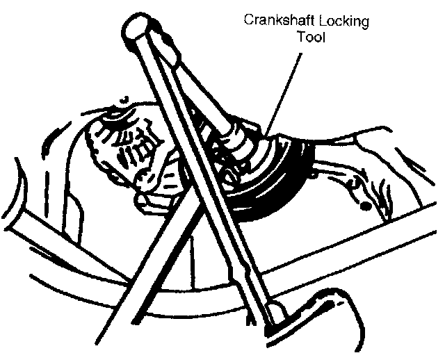 24. Secure the crankshaft with the SST (or equivalent) and tighten the crankshaft pulley lock bolt.