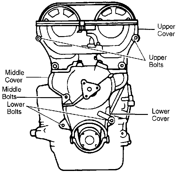 15. Install the lower. middle and upper timing belt covers. in that order. to the front of the engine.