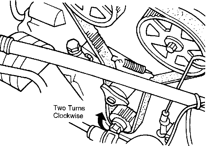 10. Rotate the crankshaft two full revolutions (clockwise only) and align the timing mark on the timing belt pulley with the timing mark on the engine block.