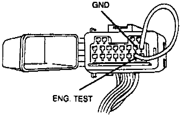 Locate data link connector and connect jumper wire between ground and engien test terminals, After completing adjustment, remove jumper wire.