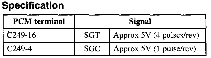 7. If not as specified, inspect the wiring harness and connector between the distributor and the PCM terminals.