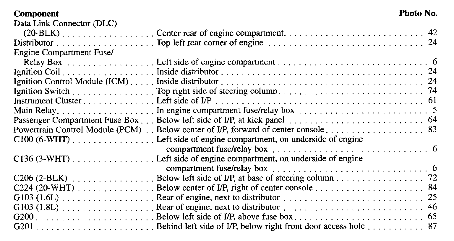 Component Location Index