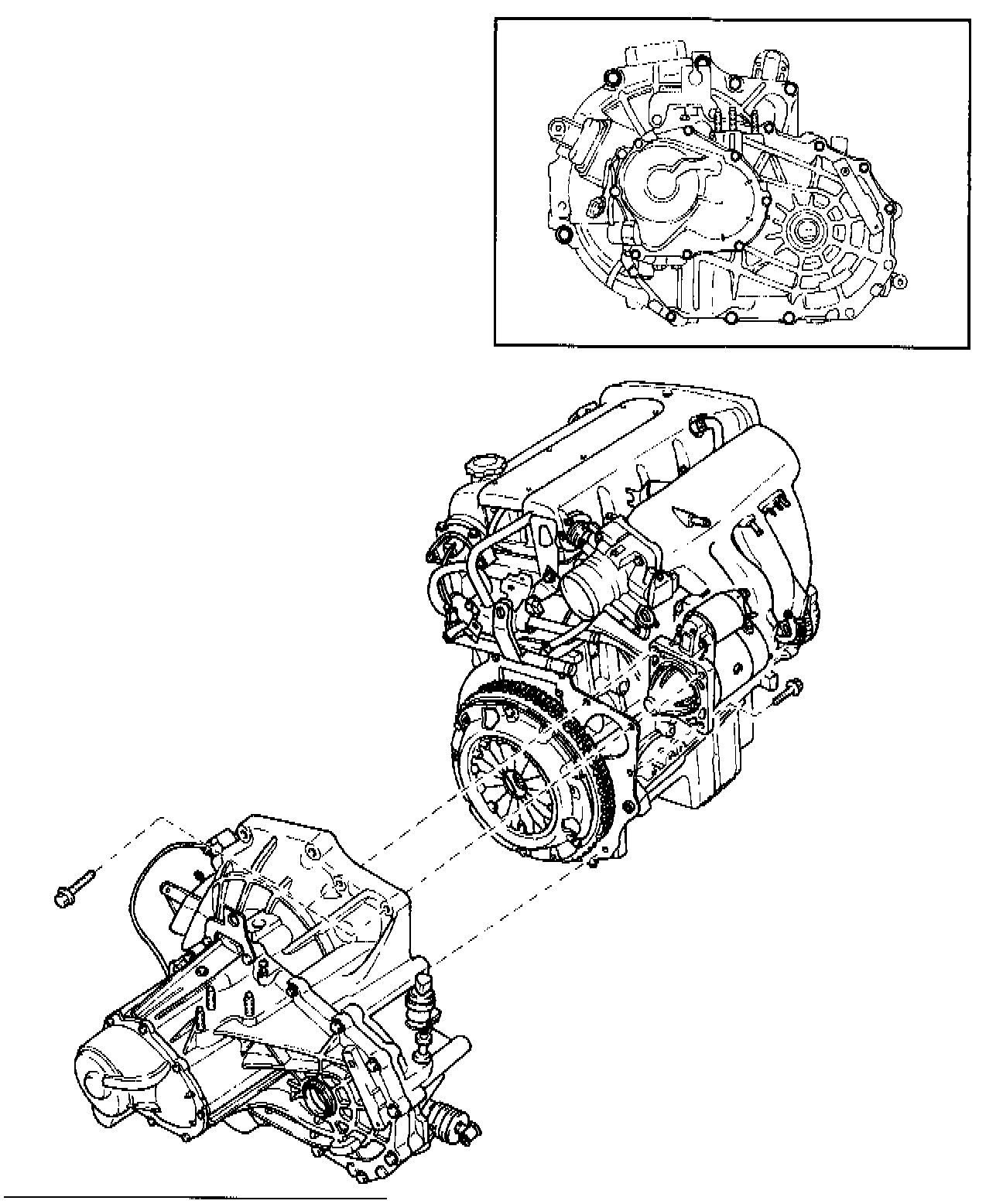 4. Remove eight transaxle mounting bolts and separate transaxle from engine.