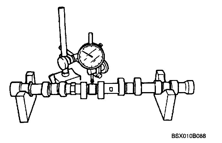 4. Measure crankshaft run-out at center journal. Replace crankshaft if it is not within specification.