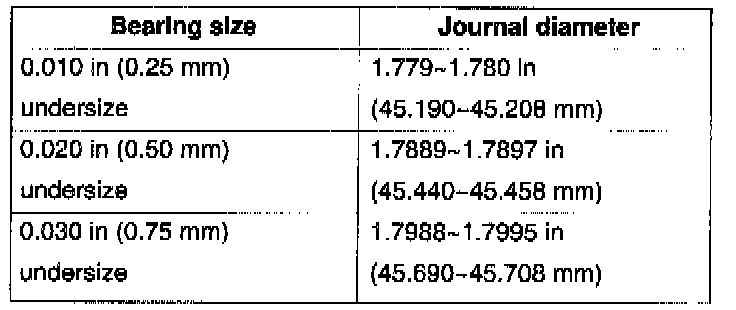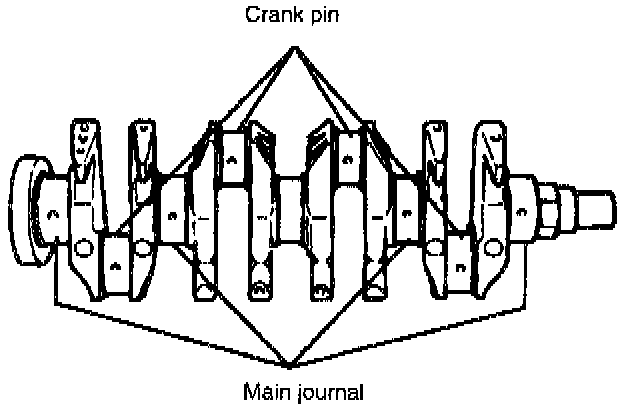 1. Check crankshaft bearing and crank pin journals for damage and scoring.