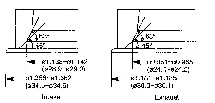 a. If valve seating position is too high, correct valve seat with a 63° valve seat cutter, and a 45° cutter.