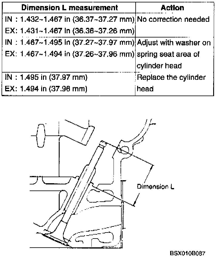 9. Check for valve sink by measuring protruding length (Dimension L) of valve stem to lower valve spring seat.