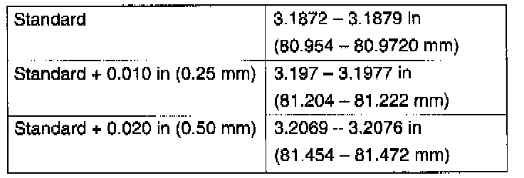 Bore + 0.010 inch (0.25 mm): 3.1990 - 3.1996 inch (81.256 - 81.269 mm)