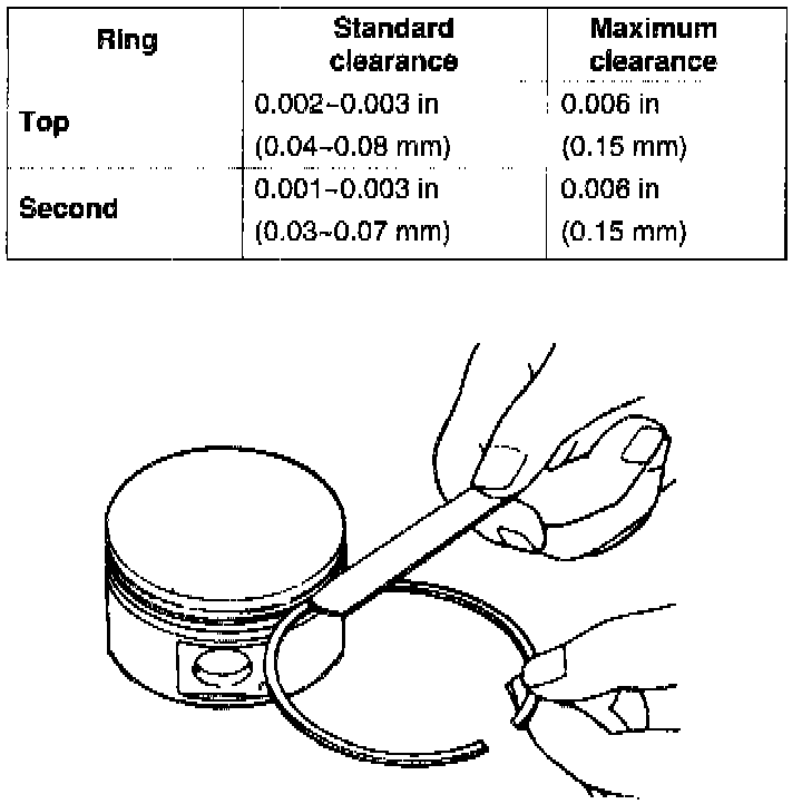1. Insert a new piston ring into a piston ring groove and check piston ring-to-side clearance.