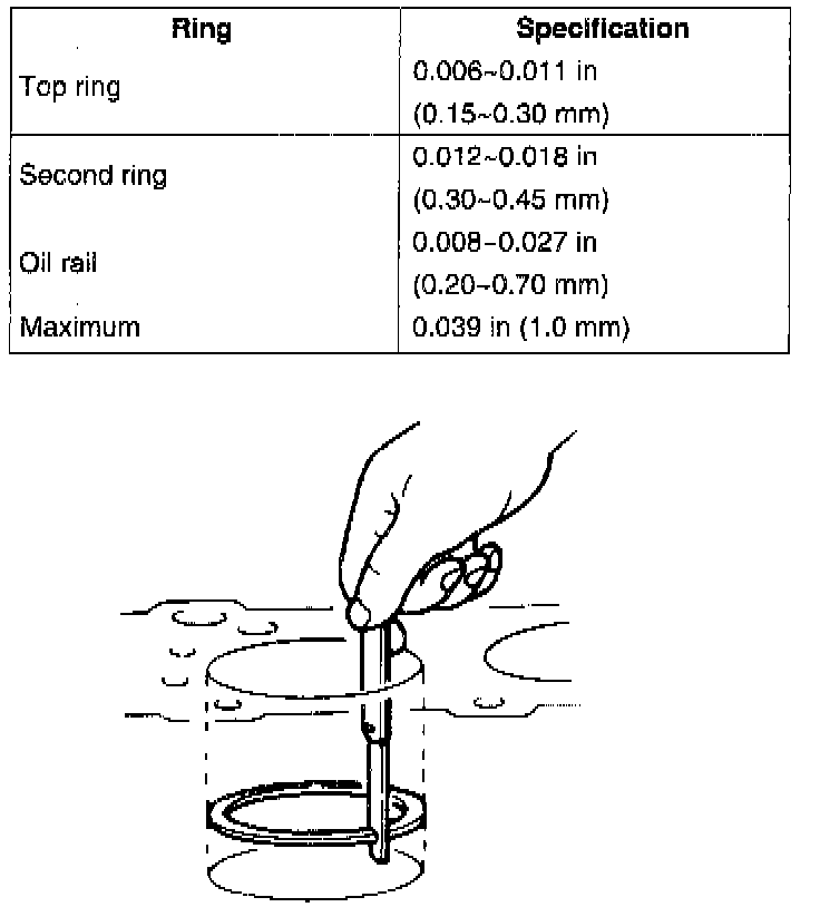 7. Place a feeler gauge in end gap and check end gap clearance.