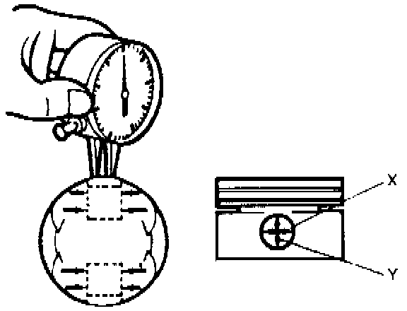 2. Measure each piston pin diameter at X and Y direction at four locations shown.