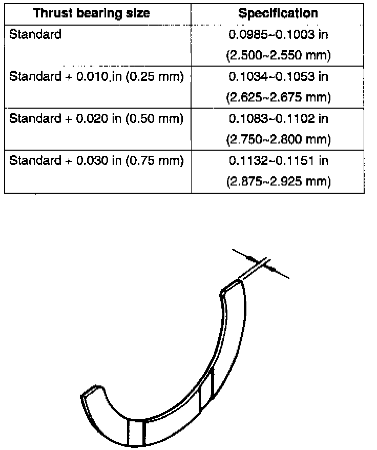 Oil clearance: 0.0008 - 0.0019 inch (0.020 - 0.05 mm)