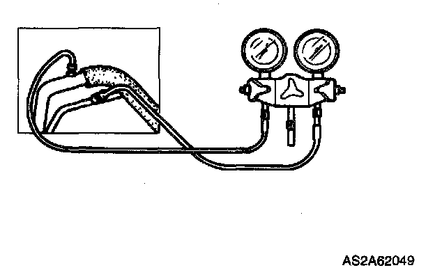 NOTE: Fittings for attaching manifold gauge set are on the high-and low-pressure pipes.1. Close both hard valves of manifold gauge set.