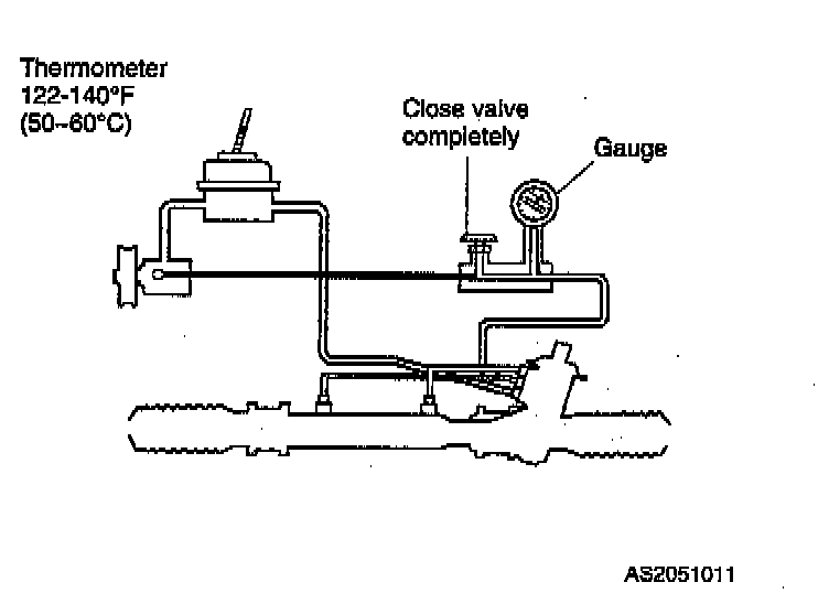 4. Open gauge valve fully. Start engine and turn steering wheel fully left and right to raise fluid temperature to 122 - 140°F (50 - 60°C).