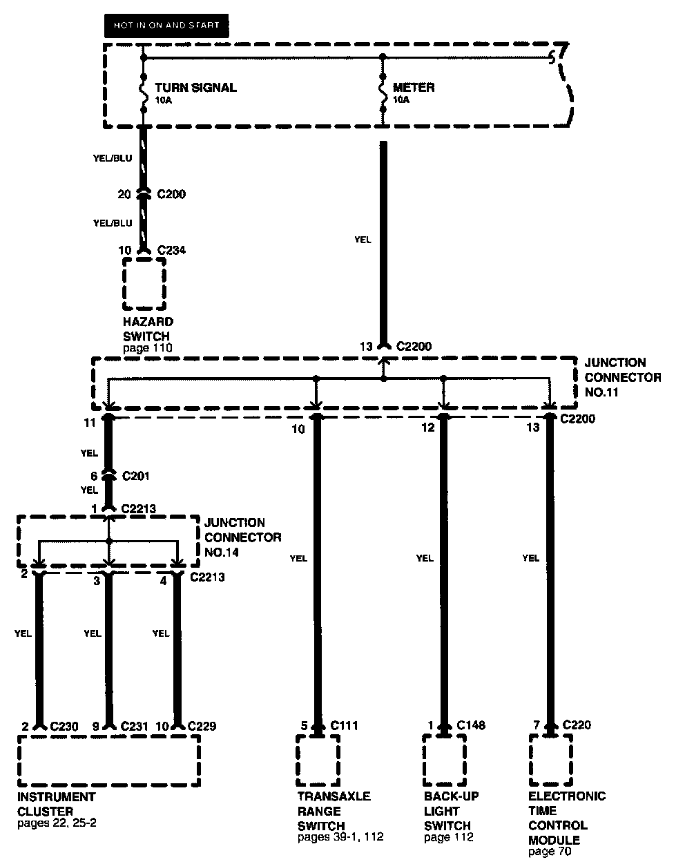 The Fuse Box Details schematic shows all the wiring between a fuse and the components connected to the output of the fuse. The Fuse Box Details schematic is extremely helpful in locating a short circuit that causes a fuse to open. This schematic may aid troubleshooting an inoperative circuit by showing a second circuit using the same fuse. If the second circuit works, then the fuse and certain wires of the inoperative circuit are good.