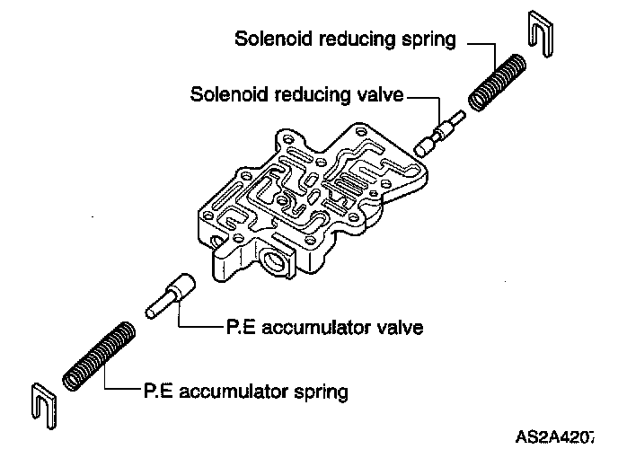 1. Insert solenoid reducing valve and solenoid reducing spring and secure them with spring retainer.