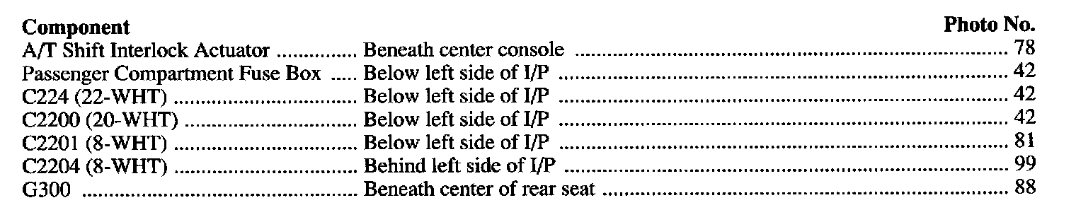 Component Location Index