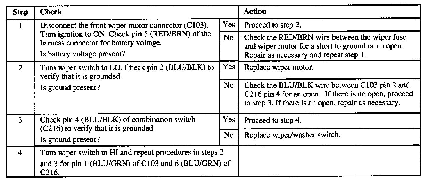 Preliminary Check: Check condition of "WIPER" fuse. If fuse is open, locate and repair source of overload. Replace fuse.