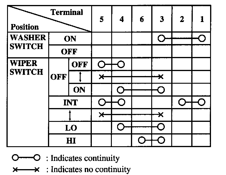 Check for continuity between terminals as indicated.