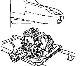 27. Remove the driver shaft and hang the engine and transaxle at the hoist, then separate engine and transaxle from the subframe.