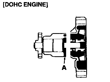 4. Check for engine coolant leakage. If the engine coolant leaks from hole "A" seal unit is defective. Replace engine coolant pump assembly.