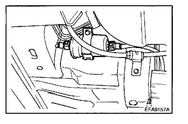 1. Raise the vehicle and remove the two fitting nuts while holding the fuel filter nut securely.