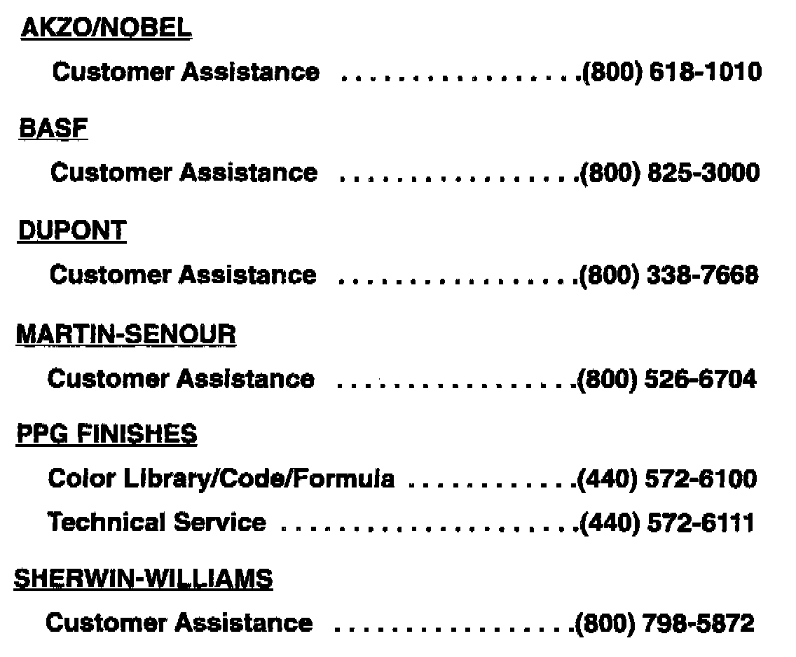 PAINT MANUFACTURER CUSTOMER ASSISTANCE TELEPHONE NUMBERS