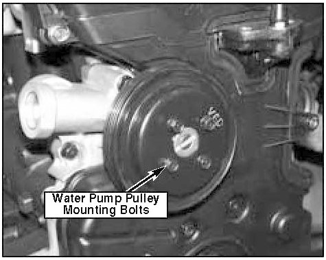 12. Remove bolts (4) securing water pump pulley to pump, and remove pulley.