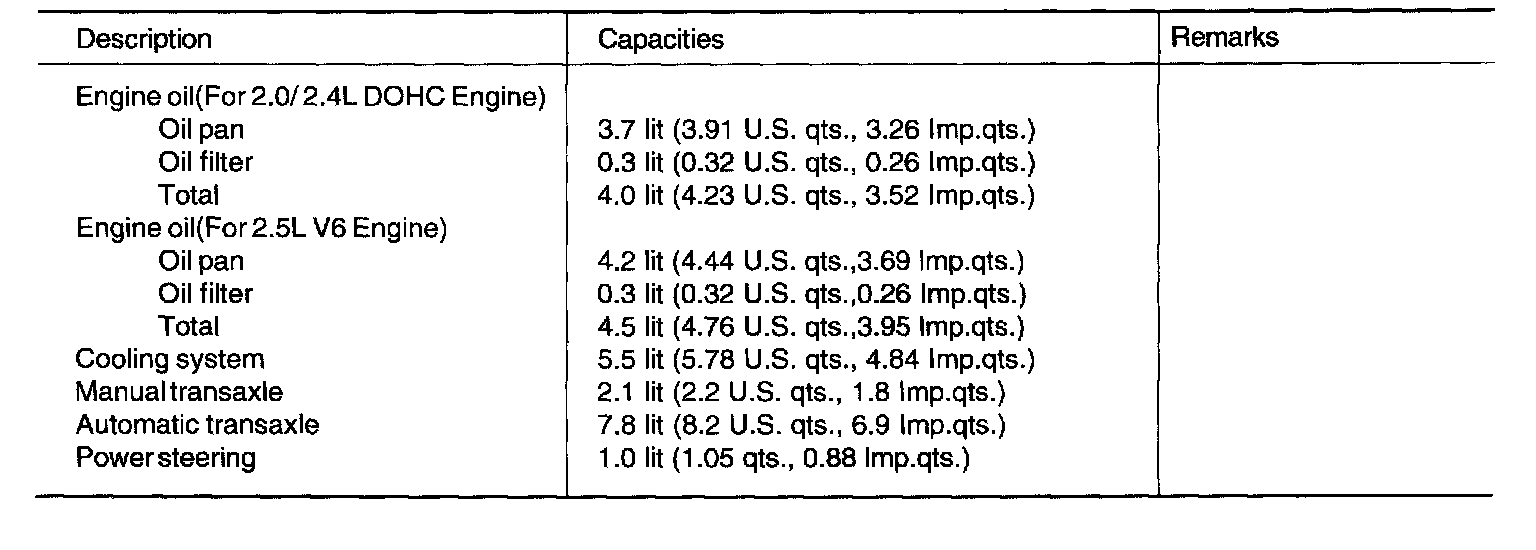 Lubricants Capacities:
