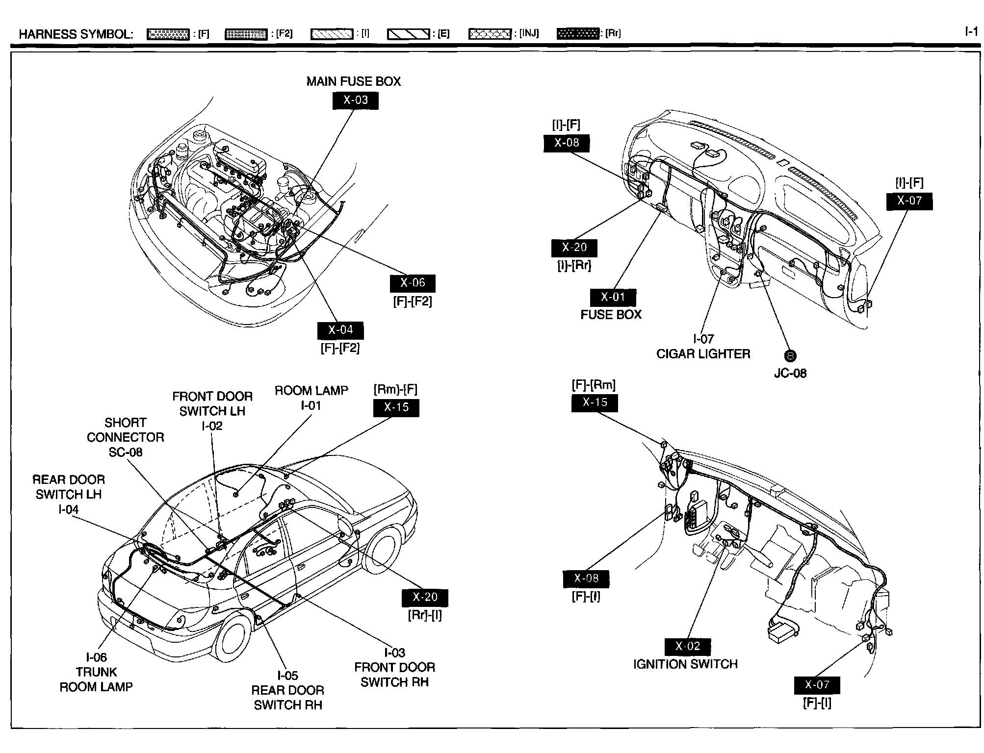 I-1 Room Lamp, Trunk Room Lamp, Cigar Light Harness/Connector Symbols: