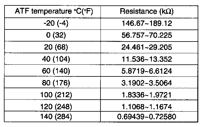 9. If not as specified, replace transaxle fluid temperature sensor and connector wiring as an assembly.
