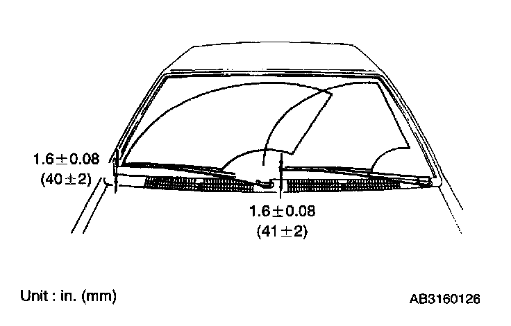 3. Install nut cover and check arm movement across windshield. Wiper arms should stop 1.6 inch (41 mm) (Driver side) and 1.6 inch (40 mm) (Passenger side) from lower edge of windshield.
