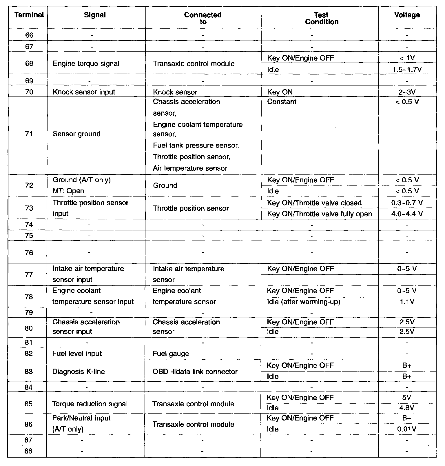 ECM Terminal Voltage (Reference) Pinouts: