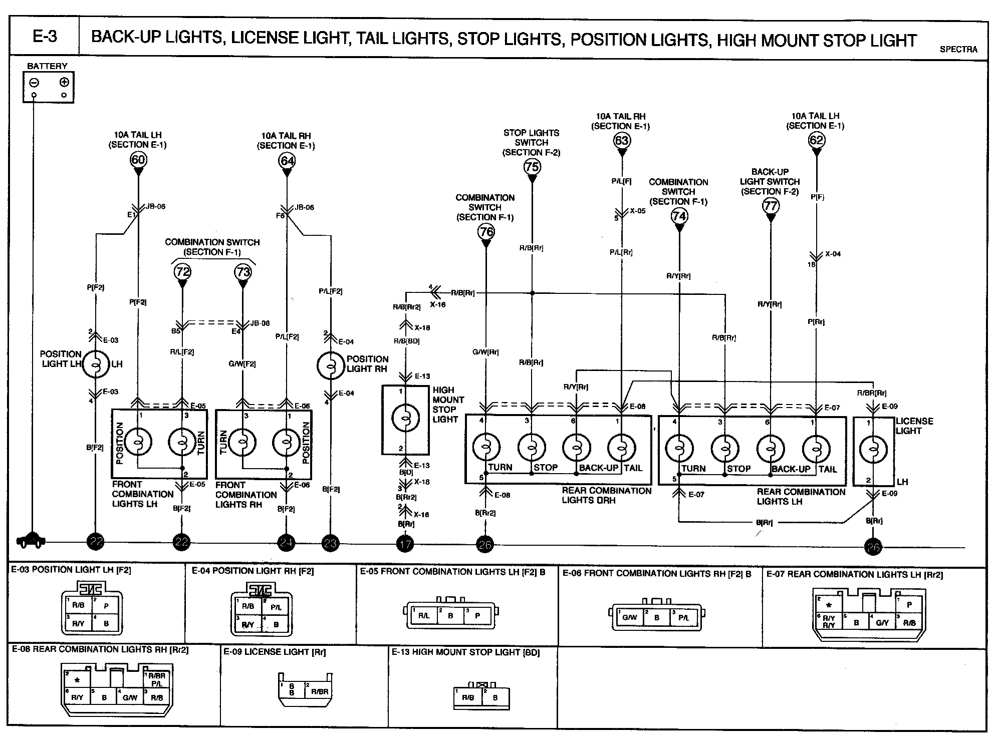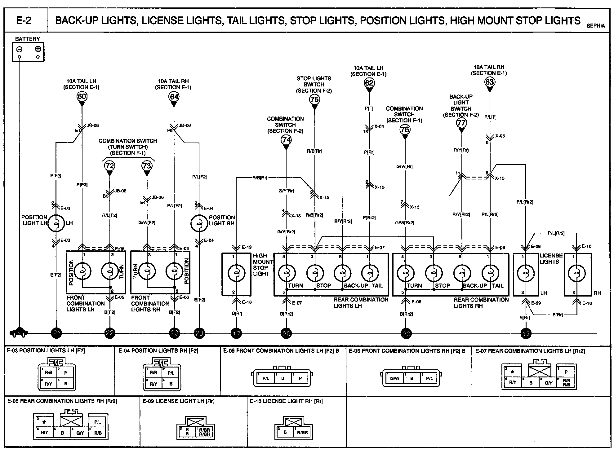 E-2 - Back-up Lights, License Lights, Tail Lights, Stop Lights, Position Lights, High Mount Stop Lights Circuit: