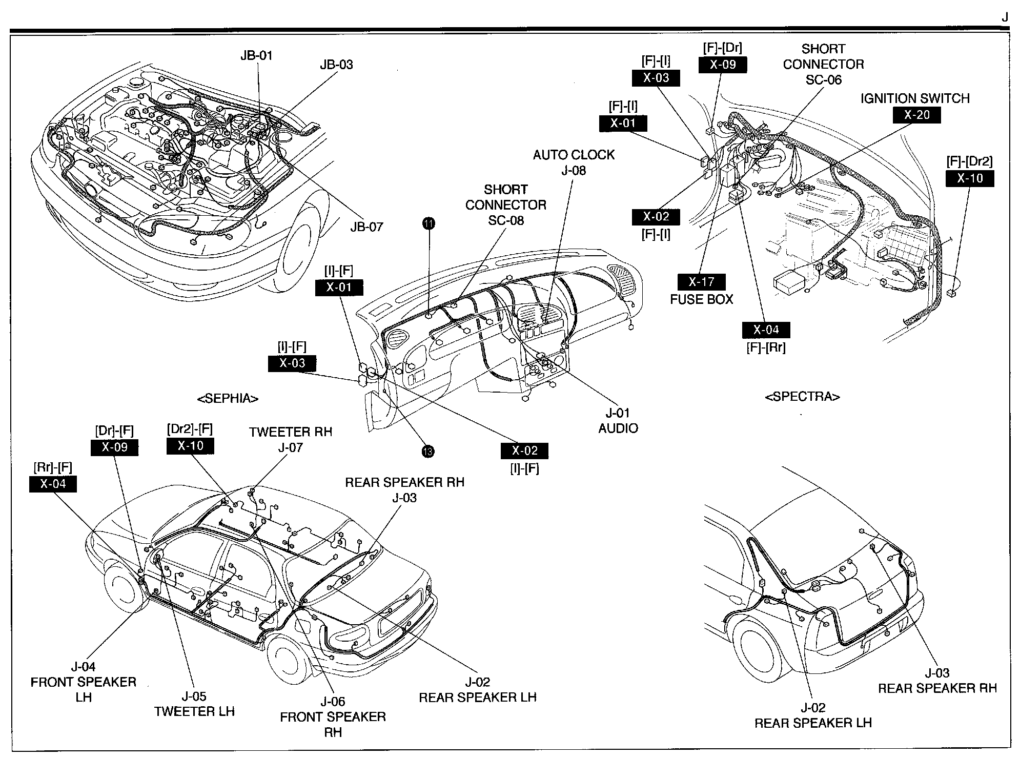 J - Audio System, Auto Clock Harness/Connector Symbols: