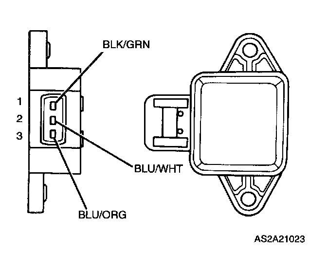 3. Connect voltmeter between terminals 1 (BLK/GRN wire) and 3 (BLU/ORG wire) on throttle position sensor connector.
