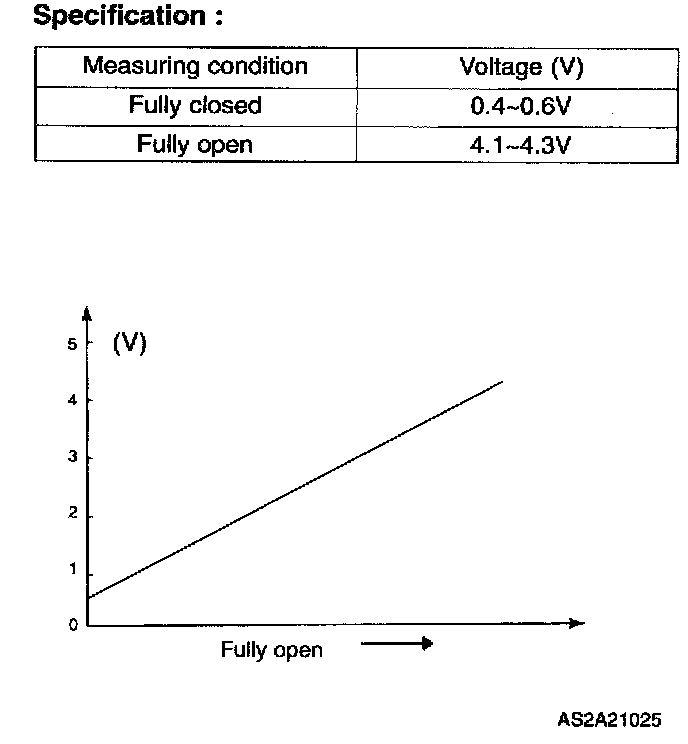Specification: 2 kohms ± 0.4 kohms (with throttle valve closed)