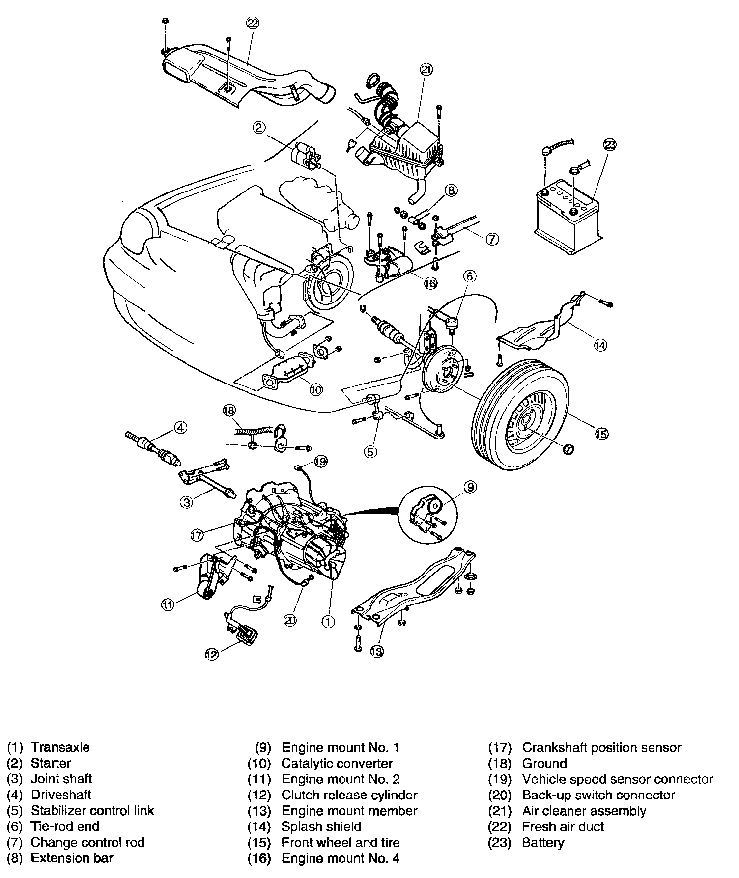 2. Set transaxle on jack or floor jack and position transaxle under vehicle.