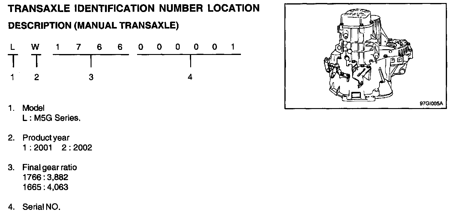 Transaxle Identification Number Location - Description (Manual Transaxle):