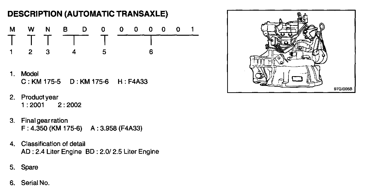 Transaxle Identification Number Location - Description (Automatic Transaxle):