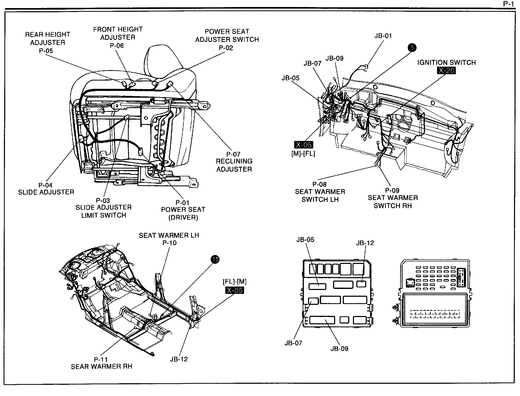 P-1 - Power Seat(Driver), Seat Warmer Harness/Connector Symbols: