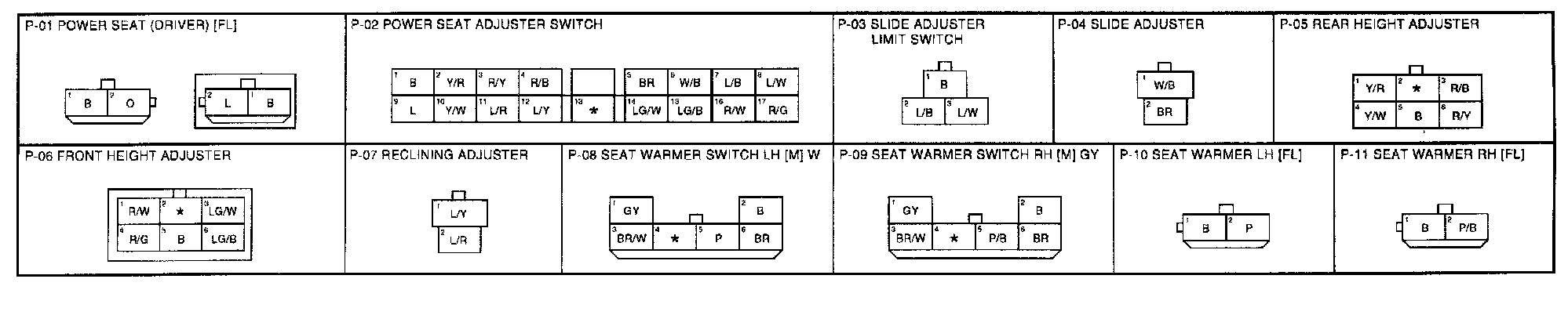 P-1 - Power Seat(Driver), Seat Warmer Connectors: